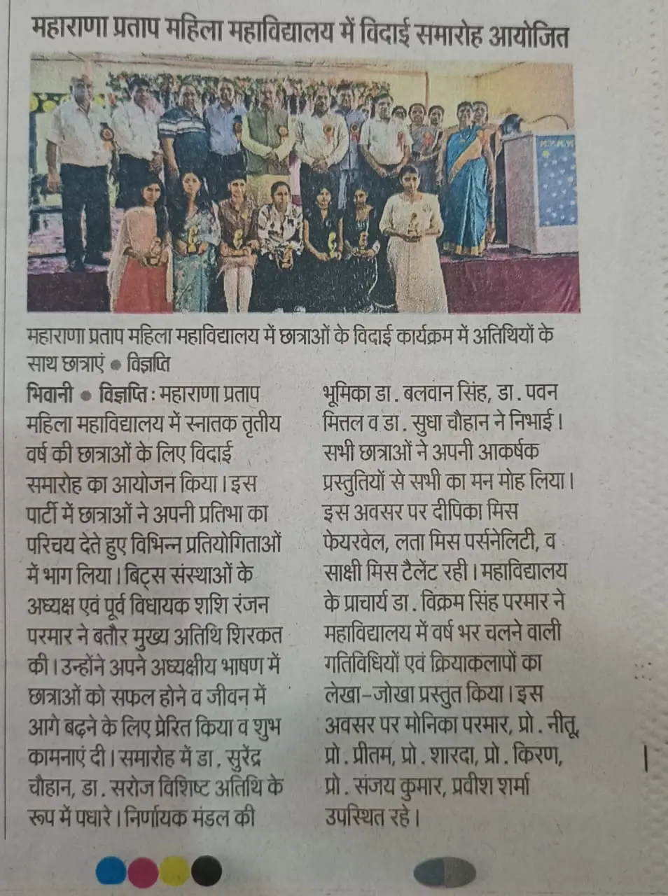 рднрд┐рд╡рд╛рдиреА- 13-08-2022 , рд╕реНрдерд╛рдиреАрдп рд╕реИрдХреНрдЯрд░-23 рд▓рдард┐рдпрд╛ рд╡рд╛рд▓рд╛ рдзрд╛рдо рдХреЗ рдирд┐рдХрдЯ рд╕реНрдерд┐рдд рдорд╣рд╛рд░рд╛рдгрд╛ рдкреНрд░рддрд╛рдк рдорд╣рд┐рд▓рд╛ рдорд╣рд╛рд╡рд┐рджреНрдпрд╛рд▓рдп рдореЗрдВ рдЙрддреНрд╕рд╛рд╣рдкреВрд░реНрд╡рдХ рдЖрдЬрд╛рджреА рдХрд╛ рдЕрдореГрдд рдорд╣реЛрддреНрд╕рд╡ рдордирд╛рдпрд╛ рдЧрдпрд╛ред рд░рд╛рд╖реНрдЯреНрд░реАрдп рдЖрд╣реНрд╡рд╛рд╣рди рдкрд░ рдЫрд╛рддреНрд░рд╛рдУрдВ рдиреЗ рддрд┐рд░рдВрдЧрд╛ рдорд╣реЛрддреНрд╕рд╡ рднреА рдЖрдпреЛрдЬрд┐рдд рдХрд┐рдпрд╛ред рдЗрд╕ рдЕрд╡рд╕рд░ рдкрд░ рд░рд╛рд╖реНрдЯреНрд░реАрдп рдзреНрд╡рдЬ рдХреЗрдВ рдорд╣рддреНрд╡ рдкрд░ рдкреНрд░рдХрд╛рд╢ рдбрд╛рд▓рддреЗ рд╣реБрдП рдорд╣рд╛рд╡рд┐рджреНрдпрд╛рд▓рдп рдХреЗ рдкреНрд░рд╛рдЪрд╛рд░реНрдп рдбреЙ. рдЬреЗ. рдкреА. рд╢рд░реНрдорд╛ рдЬреА рдиреЗ рдХрд╣рд╛ рдХрд┐ рддрд┐рд░рдВрдЧрд╛ рднрд╛рд░рддреАрдп рд╕рдВрд╕реНрдХреГрддрд┐,рдЬреНрдЮрд╛рди рдФрд░ рд╡рд┐рдЪрд╛рд░ рдХрд╛ рдкрд░рд┐рдЪрд╛рдпрдХ рд╣реИред рдпрд╣ рднрд╛рд░рдд рдХреА рдорд╣рд╛рди рдкрд░рдореНрдкрд░рд╛ рдХреА рдЖрди-рдмрд╛рди-рд╢рд╛рди рд╣реИред рддреНрдпрд╛рдЧ рдмрд▓рд┐рджрд╛рди рдФрд░ рд╢рд╛рдиреНрддрд┐ рдХреА рднрд╛рд╡рдирд╛ рдХреЗ рдкреНрд░рддреАрдХ рд╣реИ рдЗрд╕рдХреЗ рддреАрдиреЛрдВ рд░рдВрдЧред рд╕реНрд╡рддрдВрддреНрд░рддрд╛ рдХреЗ 75 рд╡реЗрдВ рд╡рд░реНрд╖ рдкрд░ рд╣рдо рд╕рдм рдЙрди рд╡реАрд░ рдмрд▓рд┐рджрд╛рдирд┐рдпреЛрдВ рдХреЛ рд╢реНрд░рджреНрдзрд╛рдкреВрд░реНрд╡рдХ рд╕реНрдорд░рдг рдХрд░рддреЗ рд╣реБрдП рдирдорди рдХрд░рддреЗ рд╣реИрдВред рдЫрд╛рддреНрд░рд╛рдУрдВ рдиреЗ тАШ рд╡рд┐рдЬрдпреА рд╡рд┐рд╢реНрд╡ рддрд┐рд░рдВрдЧрд╛ рдкреНрдпрд╛рд░рд╛ ' рдЧреАрдд рдЧрд╛рдХрд░ рд╡рд╛рддрд╛рд╡рд░рдг рдХреЛ рддрд┐рд░рдВрдЧреЗ рдХреА рдорд╣рд┐рдорд╛ рд╕реЗ рд╕рд░рд╛рдмреМрд░ рдХрд░ рджрд┐рдпрд╛ред рддрд┐рд░рдВрдЧрд╛ рдпрд╛рддреНрд░рд╛ рдорд╣рд╛рд╡рд┐рджреНрдпрд╛рд▓рдп рд╕реЗ рднрдЧрдд рд╕рд┐рдВрд╣ рдЪреМрдХ рддрдХ рдирд┐рдХрд╛рд▓реА рдЧрдИред рдЗрд╕ рдЙрддреНрд╕рд╡ рдХреЗ рджреМрд░рд╛рди рдорд╣рд╛рд░рд╛рдгрд╛ рдкреНрд░рддрд╛рдк рд╢рд┐рдХреНрд╖рдг рд╕рдВрд╕реНрдерд╛рди рдХреЗ рдкреНрд░рд╛рдЪрд╛рд░реНрдп рдбреЙреж рд╡рд┐рдирдп рд╢рд░реНрдорд╛ рдЬреА , рд╕рдВрдЬрдп , рдЕрд▓рдХрд╛, рд╣рд┐рддреЗрд╢ , рд╡ рдорд╣рд╛рд░рд╛рдгрд╛ рдкреНрд░рддрд╛рдк рдорд╣рд┐рд▓рд╛ рдорд╣рд╛рд╡рд┐рдзрд╛рд▓рдп рдХреЗ рдХрд╛рд░реНрдпрд╛рд▓рдп рдЕрдзреАрдХреНрд╖рдХ рдкреНрд░рд╡реАрдг рд╢рд░реНрдорд╛ рдЖрдпреЛрдЬрди, рдкреНрд░рднрд╛рд░реА рдбреЙреж рдбрд┐рдореНрдкрд▓ рдпрд╛рджрд╡, рдореЛрдирд┐рдХрд╛ рдкрд░рдорд╛рд░ рддрдерд╛ рдзрд╛рддреНрд░рд╛рдПрдВ рдЖрд╕реНрдерд╛ рд╢рд░реНрдорд╛ , рдореЛрдирд┐рдХрд╛ рд╢рд░реНрдорд╛ , рджреАрдкрд┐рдХрд╛ рд╢рд░реНрдорд╛ , рдирд┐рд╢рд╛ , рдЧрд╛рдпрддреНрд░рд┐ , рдкреВрд░реНрд╡реА , рд░реЗрдиреВ , рдЖрджрд┐ рдЙрдкрд╕реНрдерд┐рдд рд░рд╣реА ред